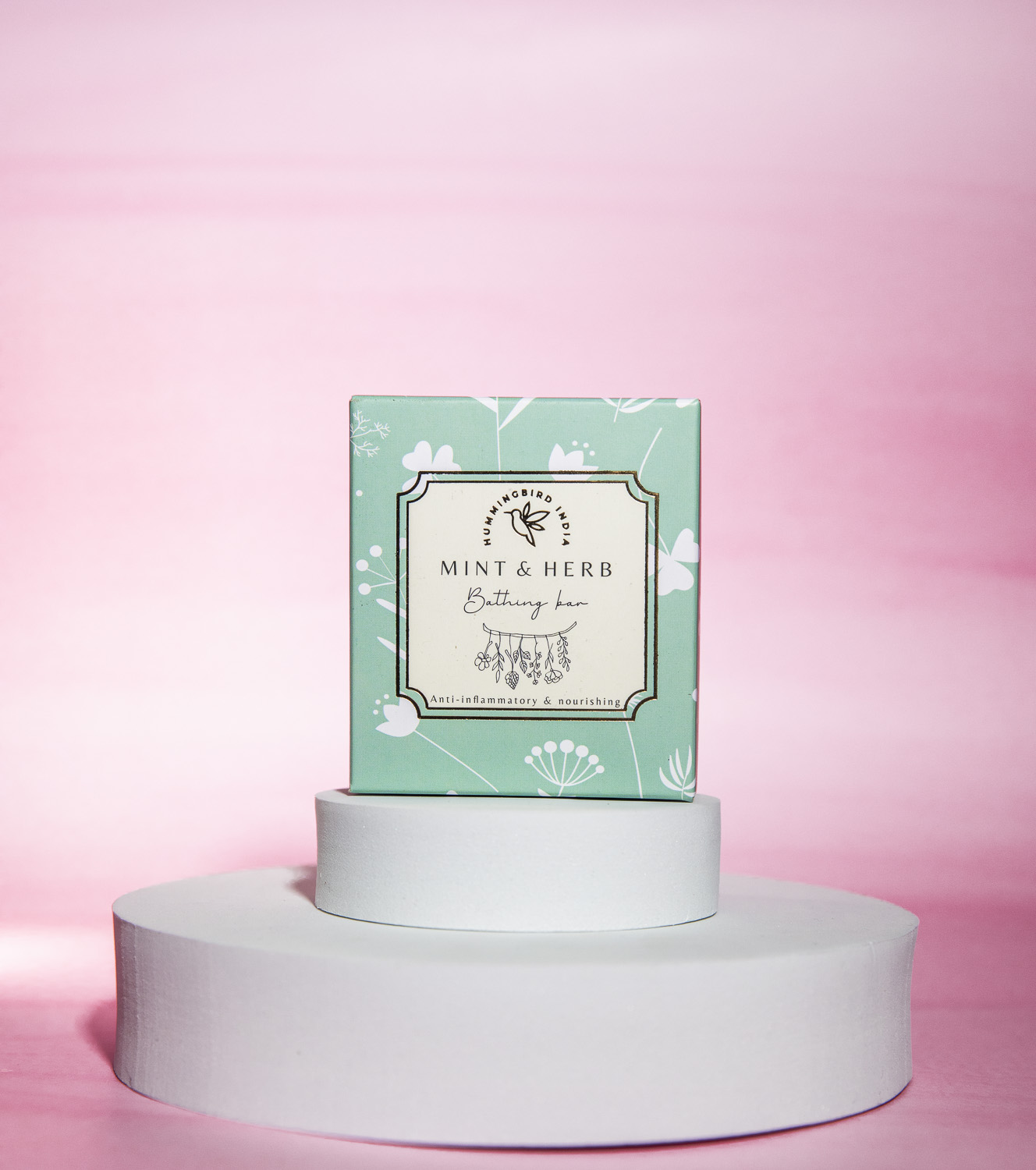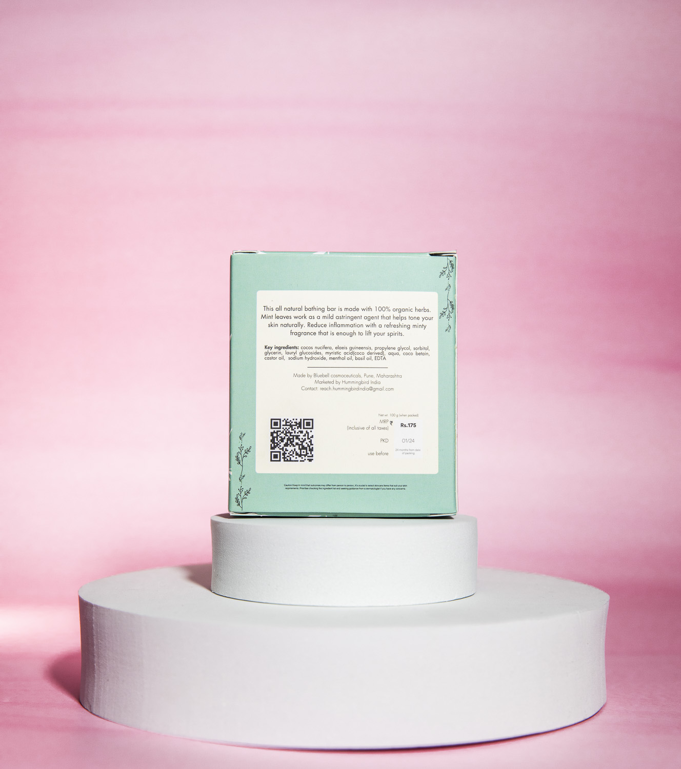 This all natural bathing bar is made with 100% organic herbs. Mint leaves work as a mild astringent agent that helps tone your skin naturally. Reduce inflammation with a refreshing minty fragrance that is enough to lift your spirits!.